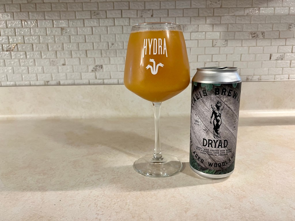 I’m going with a completely different style on today’s Brew Review with Dryad from Mortalis. For this 10% frosted smoothie version of an Eastern sour, they aged the Hydra base in Old Elk Whiskey barrels and then conditioned it on pineapple, cara cara orange, lemon, vanilla and cinnamon.