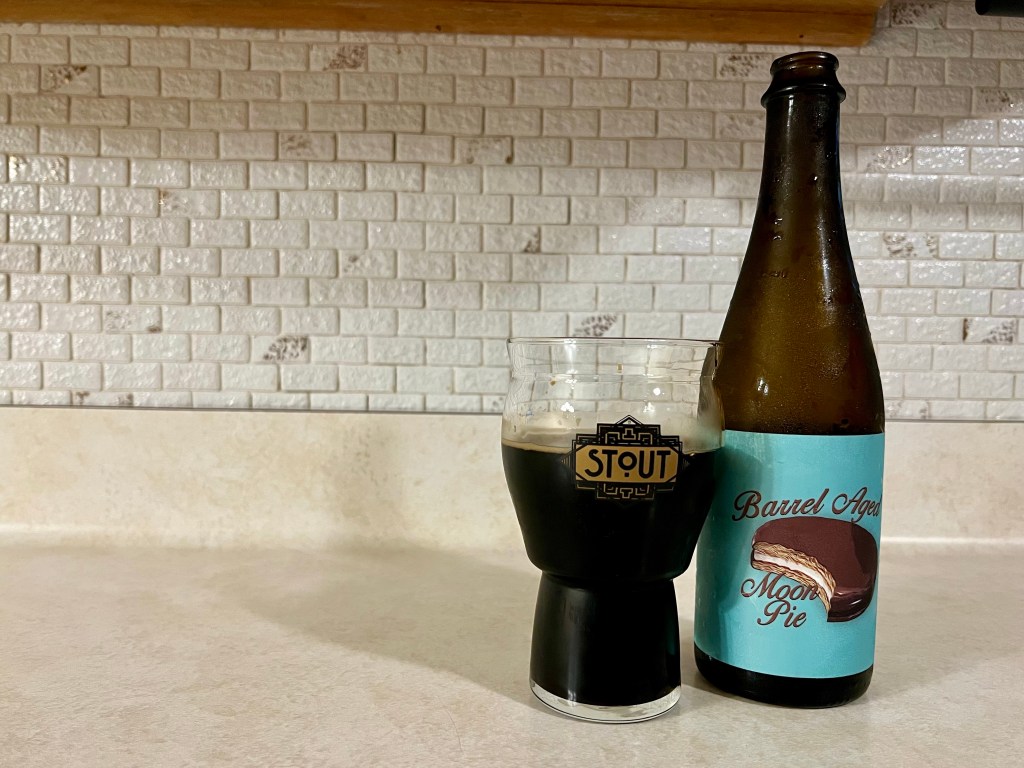 On today’s Brew Review, I’m having Corporate Ladder in Florida’s Barrel Aged Moon Pie. This 12% moon pie inspired stout starts with a blend of imperial stout aged in Old Fitzgerald 6 year and Henry McKenna 8 year bourbon barrels for 14 months and then conditioned on Haitian cacao nibs, Ugandan vanilla beans and marshmallow.