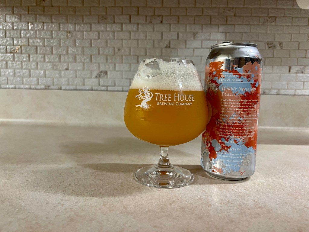 Yesterday I tried Double Nectarous, the first of a new line of IPAs from Tree House and on today’s Brew Review I’m having the Peach version. This version of the 8% double IPA is brewed with a fruit forward selection of American hops, a heavy dose of peach puree and a touch of milk sugar.