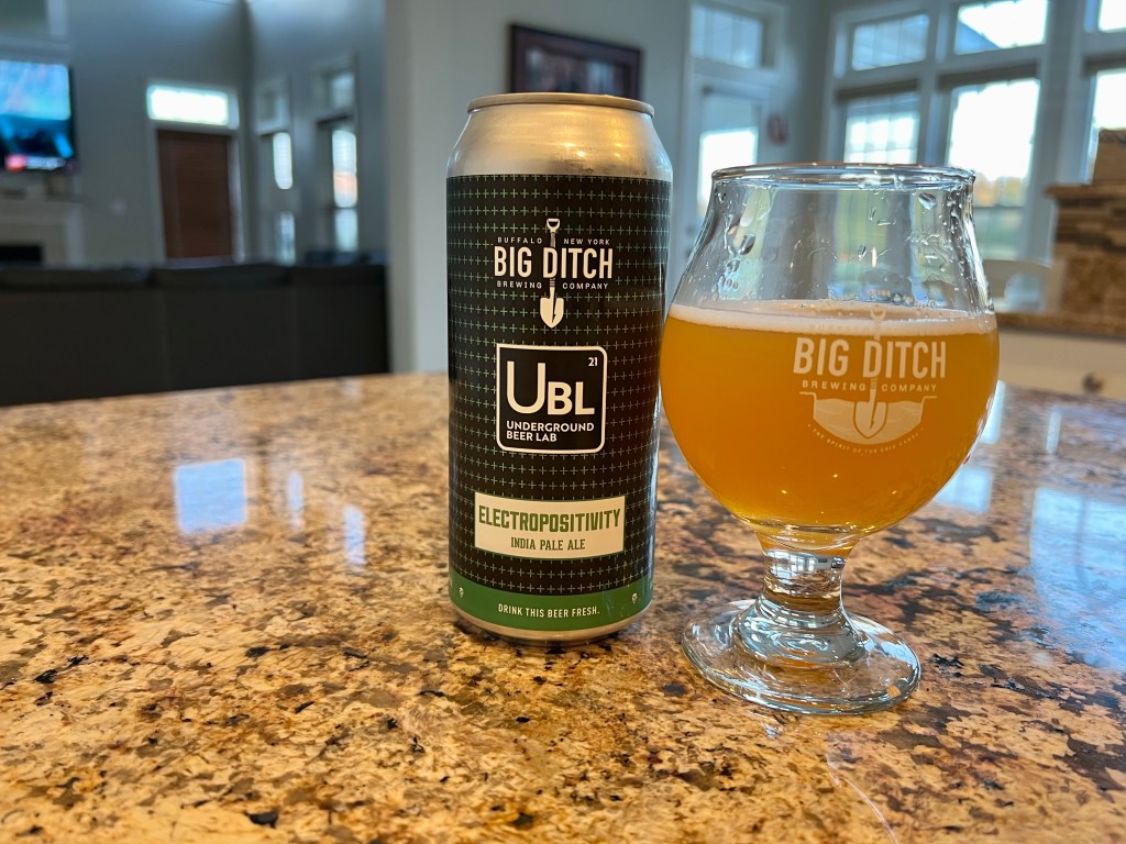 For today’s Brew Review, Big Ditch collabed with Underground Beer Lab from Syracuse and they blended their collective brewing science knowledge to create an IPA like neither have made before, Electropositivity. This 6.3% IPA features Nelson Sauvin, Motueka and Strata hops then the mash is hopped with NYS Cascade hops and fermented with Cosmic Punch yeast.