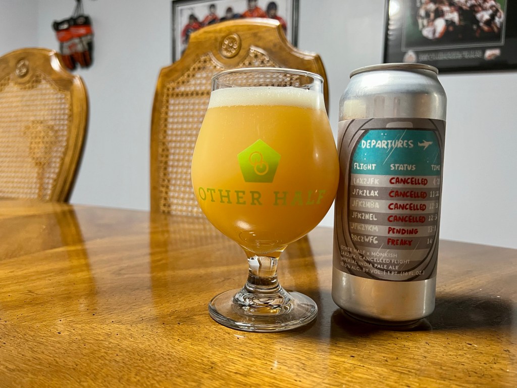 I went a little out of order not having the regular LAX2JFK/JFK2LAX first of Other Half and Monkish’s collab series. On today’s Brew Review, I’m having Other Half’s LAX2JFK: Cancelled Flight. This 10% imperial triple IPA takes the LAX2JFK/JFK2LAX base and builds upon the existing Citra and Simcoe hop schedule with Cashmere and Riwaka hops.
