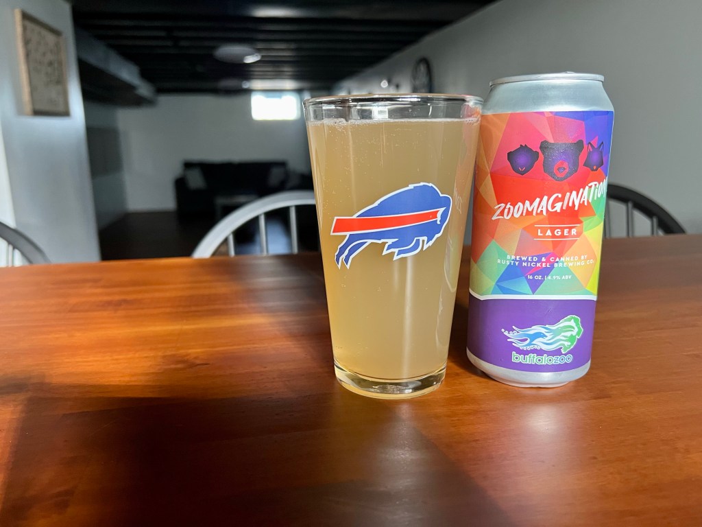 I missed posting this yesterday but on today’s Brew Review, I’m having a very local beer, Rusty Nickel Brewing’s Zoomagination Lager. They brewed this 4.9% Japanese rice lager for the Buffalo Zoo’s Zoomagination festival.