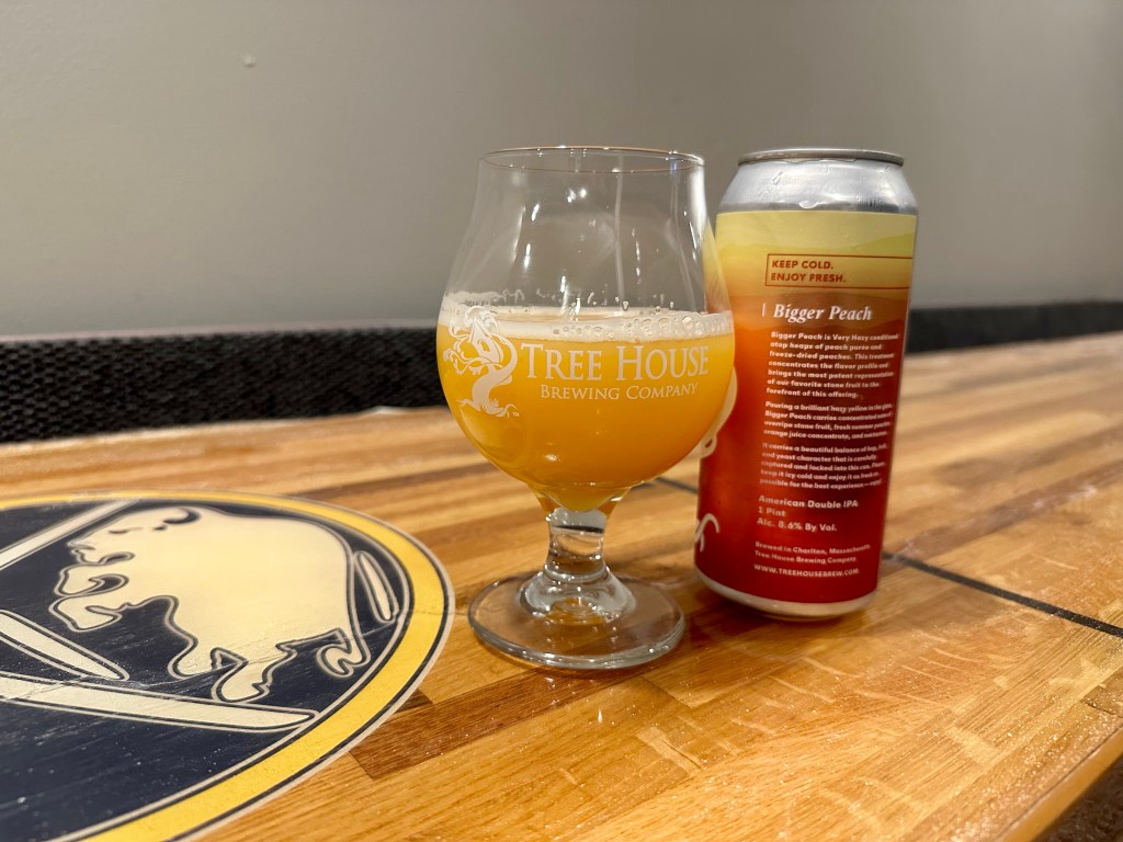 I really like Tree House’s Very Hazy and I love when they add peach to their IPAs. Bigger Peach, on today’s Brew Review is an 8.6% American double IPA and a version of Very Hazy conditioned on heaps of peach puree and freeze-dried peaches.