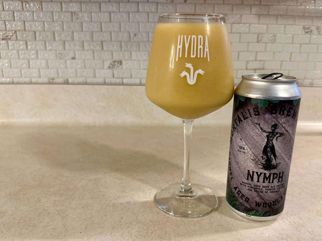 On today’s Brew Review, I’m having Nymph, the latest from the Mortalis Woodland Series. This 10% barrel aged sour aged the Hydra base in Cruzan Rum barrels and conditioned on pineapple, toasted coconut and cream of coconut for their take on a piña colada.