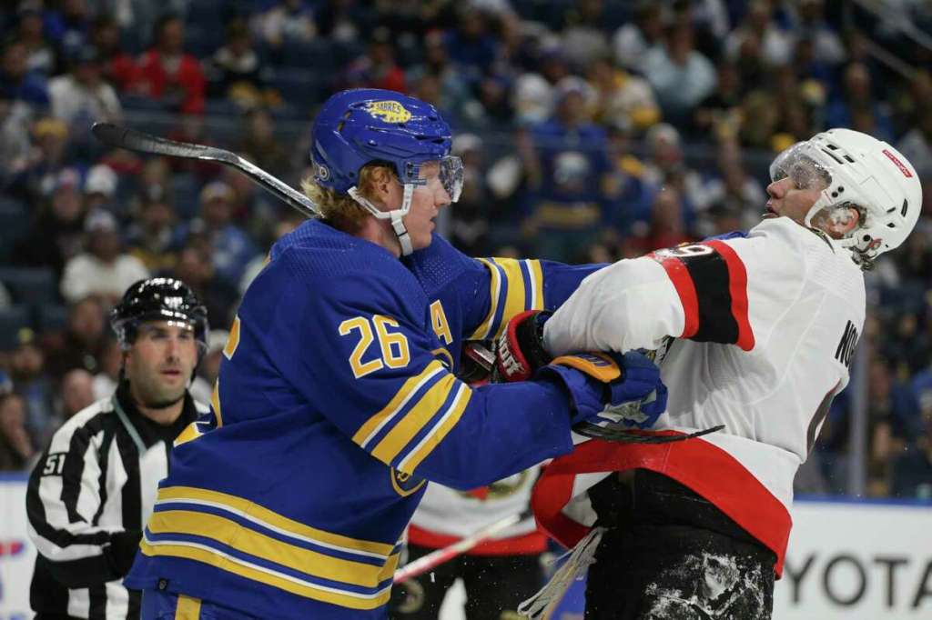 The Sabres got off to a bit of a slow start going down 1-0 in the first period on a goal from Sens captain Brady Tkachuk 10:16 into the game, but they didn’t look back as that was the only goal that the oldest player in the NHL, Craig Anderson let in. The Sabres were outshot 14-9 and out hit 8-4 but played a decent and physical first period. 4:31 into the second period, the Sabres tied the game with their first goal of the season on JJ Peterka’s first NHL goal of his career. Rasmus Dahlin got in front of the net and tapped in the go ahead goal 7:15 into the period and Buffalo never looked back. Later in the second period, the Sabres had a huge penalty kill, burning off an Ottawa 5 on 3 and even getting a few nice shorthanded looks. The Sabres outshot the Sens 15-11 in the second period. After a mostly scoreless third period with both teams getting a lot of solid chances, Victor Olofsson iced off the game, scoring on the empty net with 42 seconds left after a fantastic save by Craig Anderson and then 17 seconds later he added another one for good measure.