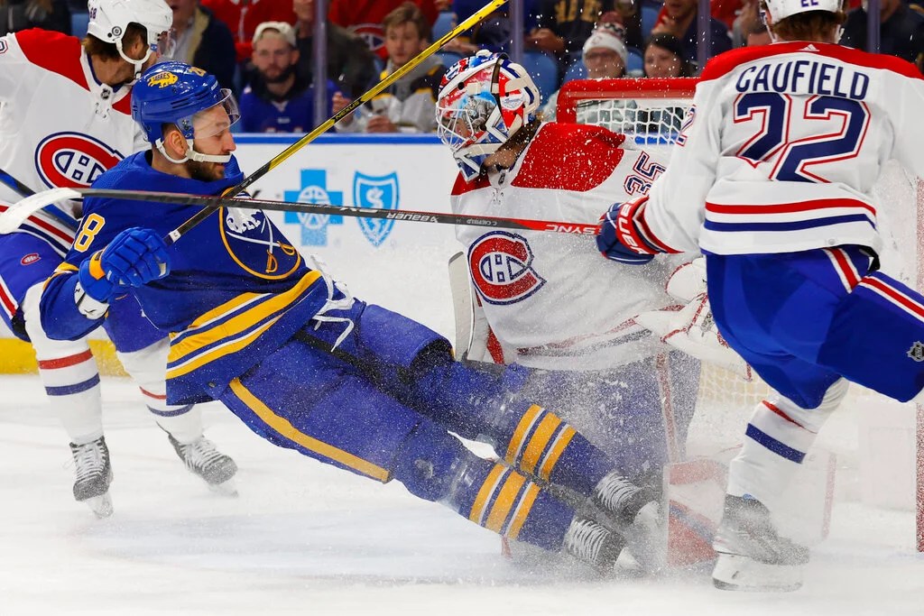 Jeff Skinner deked out Sam Montembeault 31 seconds into the second period to tie it up at 1-1 on a beauty goal that he finished top shelf. The Sabres poured it on in the second, outshooting Montreal 14-7 in the period.