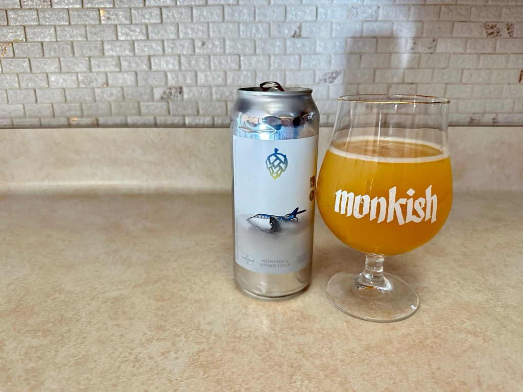 The next beer from the Monkish and Other Half flight series that I’m trying on today’s Brew Review is Monkish’s version of JFK2LAX: Foggy Landing. This 8.5% imperial IPA mash ups up a DDH of the JFK2LAX hop combo of Citra, Motueka and Simcoe and their Foggy Window hop combo of Citra, Nelson Sauvin and Galaxy.