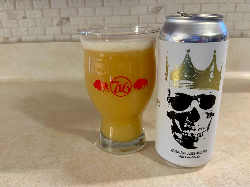 On today’s Brew Review, I’m having Motive and Justifiable End. This is a 10% triple IPA brewed with Citra, Galaxy, Nelson and Rakau hops that Fidens collaborated on with Electric Brewing in Cali.