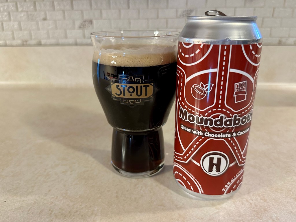 I’m having a local stout on today’s Brew Review. Moundabout from Hamburg Brewing Company is a light 7.3% stout with chocolate and coconut based on Mounds candy bars.