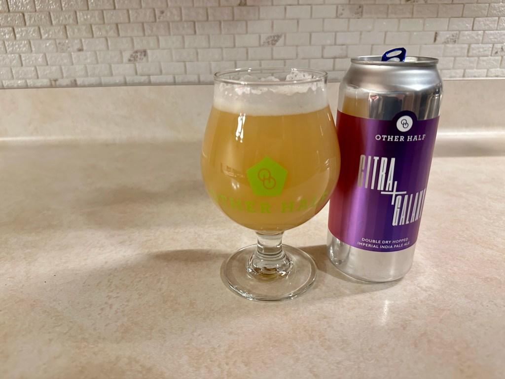 I’m having another relatively cheap and easy to get Other Half IPA on today’s Brew Review, their Citra + Galaxy. This 8.5% double dry hopped imperial IPA explores Citra and Galaxy hops in equal amounts.