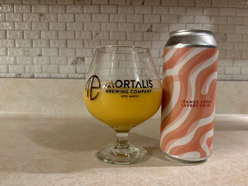 A few months ago, Mortalis’s Strawberry Creme Savers Swirl was one of my favorite beers they ever made so on today’s Brew Review, I’m trying their Orange Cream Savers Swirl. This 7% fruit smoothie sour ale was brewed with orange, tangerine, sorbet, coconut, and real cream.