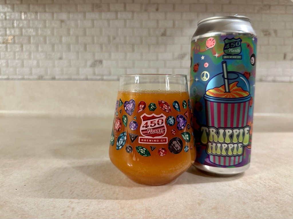 I’m having another 450 North sour, Slushy XL Trippie Hippie, on today’s Brew Review. This 5.3% smoothie-style sour ale with red dragon fruit, cara cara orange, and passionfruit.