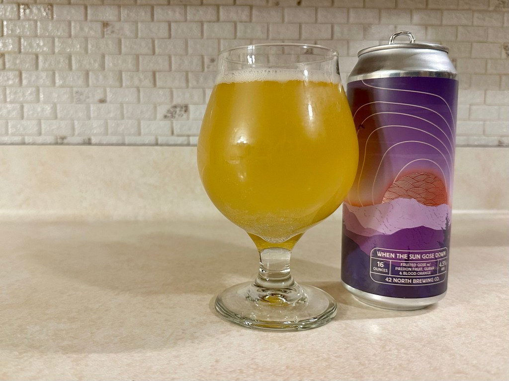 I’m having a local beer from 42 North in East Aurora, NY on today’s Brew Review. When the Sun Gose Down is a light 4.5% fruited gose with passion fruit, guava, and blood orange and a pinch of coriander and salt.