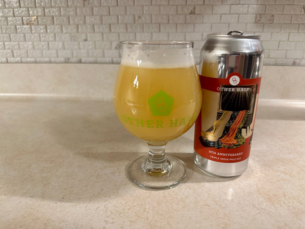 Celebrating their ninth anniversary, Other Half brewed this 10% triple IPA on today’s Brew Review. They leaned into two of their favorite hops, Citra, Citra Incognito and Galaxy with the addition of Belma and Cashmere Cryo.