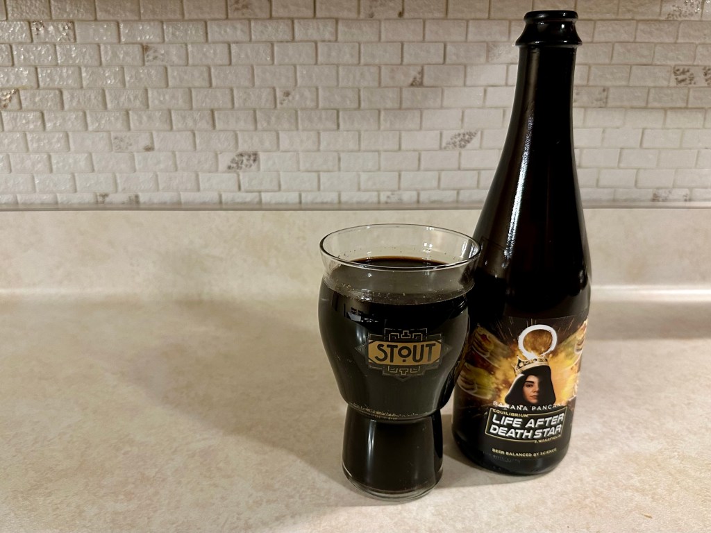 The Life After Death Star yearly series of imperial stouts from Equilibrium and J. Wakefield are always fantastic and on today’s Brew Review, I’m trying this year’s banana pancake variant. This 11% imperial stout was brewed with Thai banana, raw coconut, maple syrup, almonds, cinnamon, marshmallow, Mostra Coffee, and lactose.