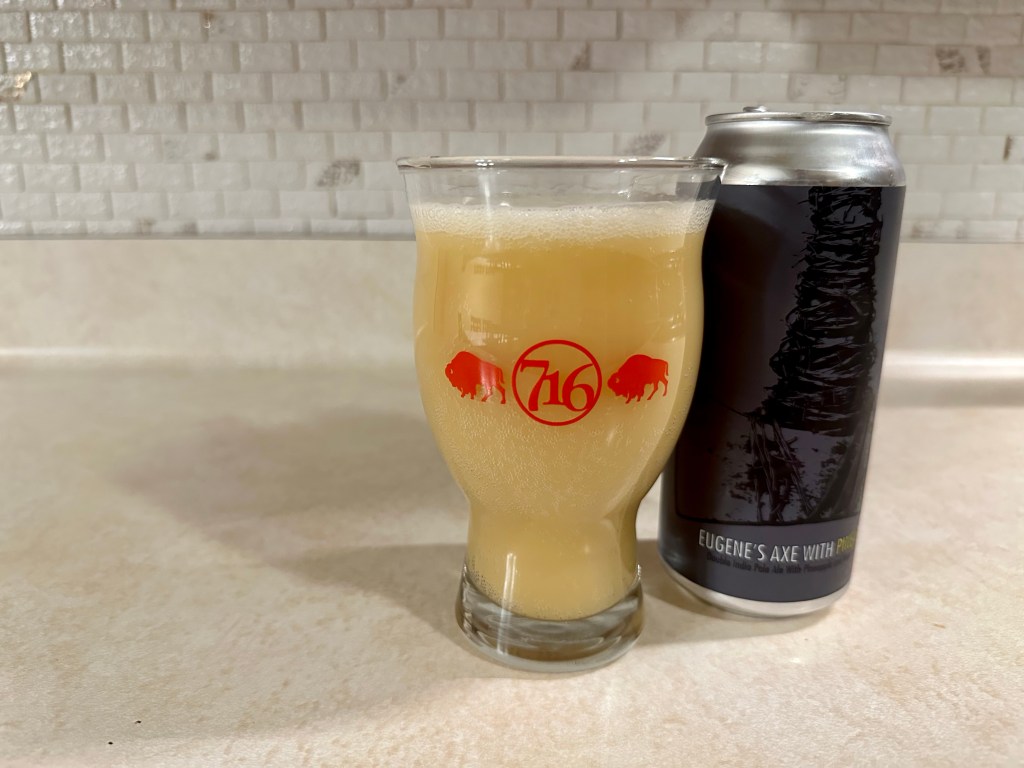 After taking a day off, on tonight’s Brew Review, I’m having the pineapple variant of one of Fiden’s flagship beers, Eugene’s Axe. This 8.5% double IPA was brewed with Citra and Galaxy hops conditioned on pineapple.