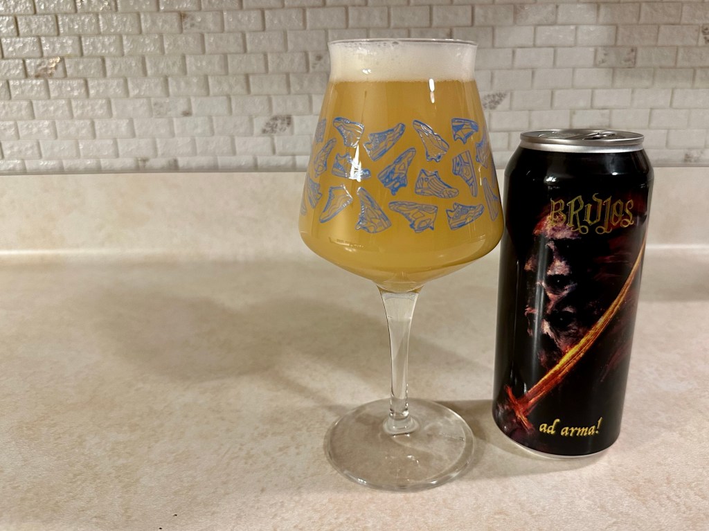 I’m having a very hyped up beer (going for $100 a four pack nationally) on today’s Brew Review, Ad Arma! from Brujos Brewing in Portland, Oregon. This 10% triple hazy IPA brewed was with Citra Incognito hops and double dry hopped with Galaxy and Citra.
