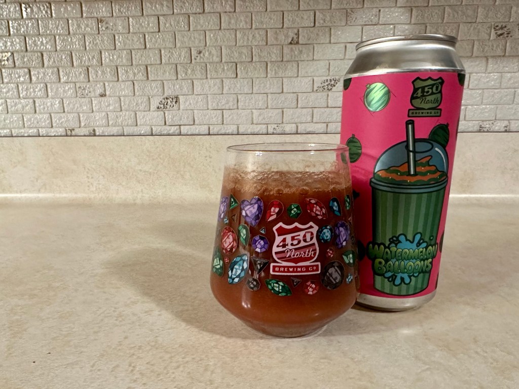 On today’s Brew Review, I’m having the Watermelon Balloons variant of 450 North’s Slushy XXL. This flavor of the smoothie-style sour ale sounded delicious with double watermelon, peach, strawberry, and lime.