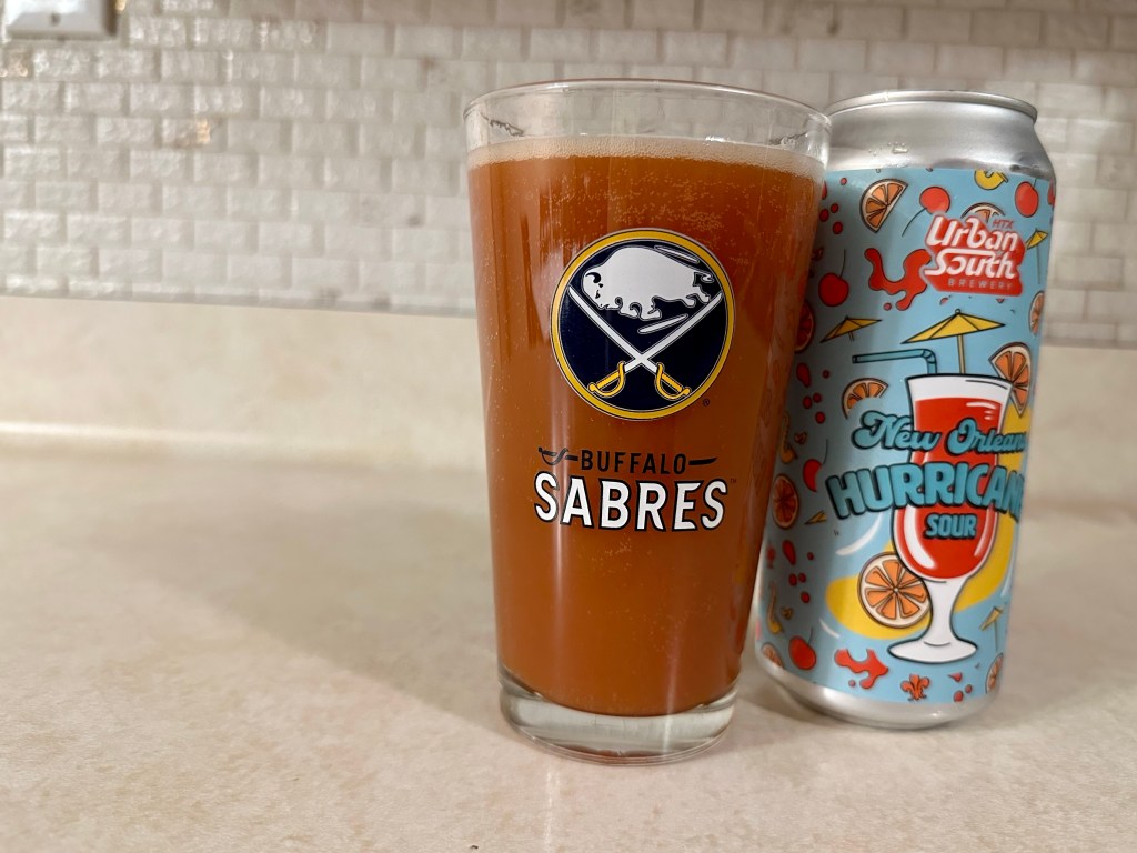 I’m having the cocktail inspired New Orleans Hurricane Sour from Urban South on today’s Brew Review. This 6.5% fruited sour was flavored on tangerine, cherry, fruit punch, and passion fruit for a taste of NOLA.