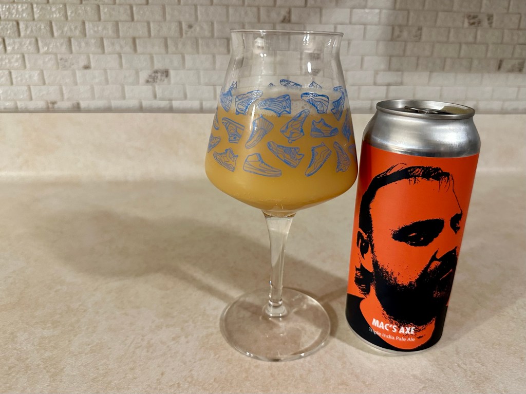Mac’s Axe is a collab that Fiden’s brewed with North Park Beer Co. This 10% triple IPA that I’m trying on today’s Brew Review was brewed with Citra, Motauka, Enigma, and Riwaka hops.