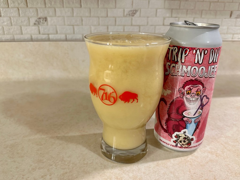 For Trip ’n’ Dip Schmoojee, Imprint teamed up with Tripping Animals Brewing in Florida, that I’m trying on today’s Brew Review. This heavily fruited smoothie sour was brewed with banana, caramelized white chocolate, marshmallow, pineapple, and a touch of passionfruit.