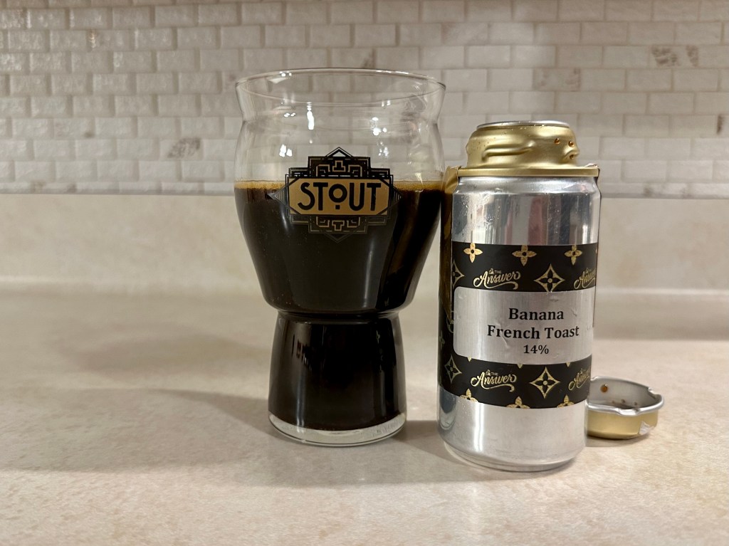 On today’s Brew Review, I’m having a little can of a delicious, heavy 14% barrel aged (I said it wasn’t incorrectly as I recorded it) stout from The Answer in Richmond, VA that could be breakfast, Banana French Toast.