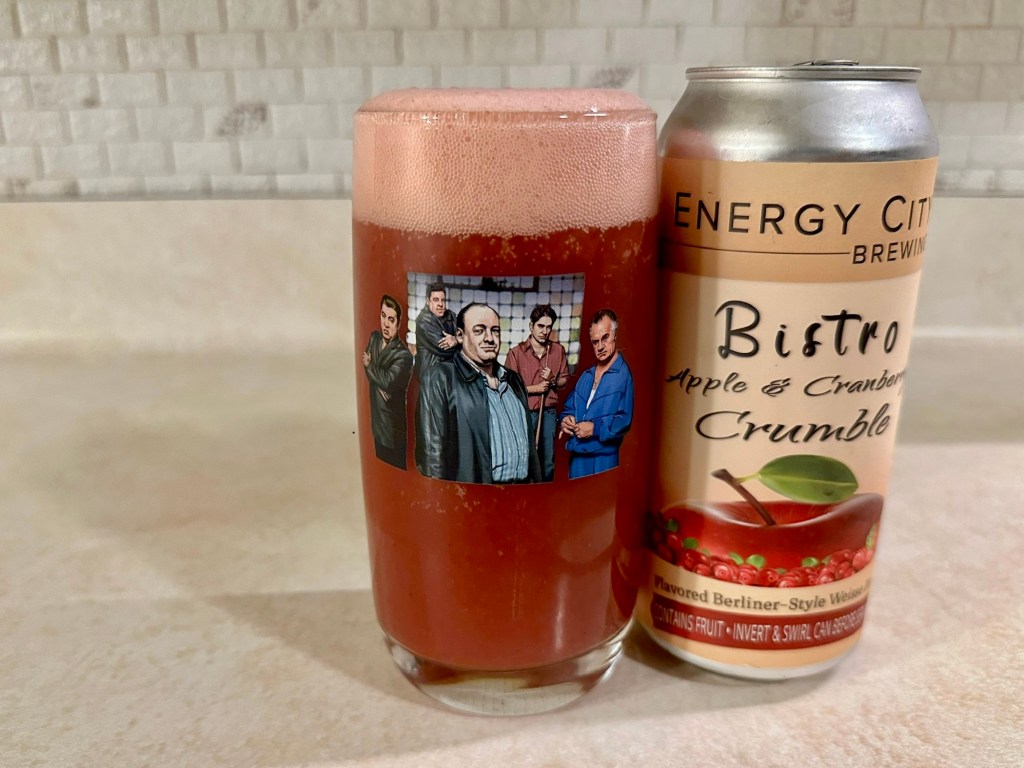 Even though its summer, I’m having more of a fall-themed beer on today’s Brew Review, the Apple & Cranberry Crumble version of Energy City Brewing’s Bistro series. This 6.5% Berliner-style weisse beer was brewed with apples, cranberries, cinnamon, and brown sugar.