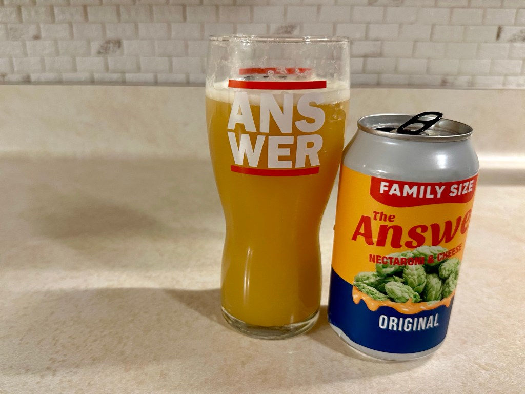 On this very late night Brew Review, since I can’t miss a day, I’m having Nectaroni & Cheese from The Answer, my second beer in a row from them. This 8% hazy double IPA is brewed with…you guessed it, Nectaron hops.
