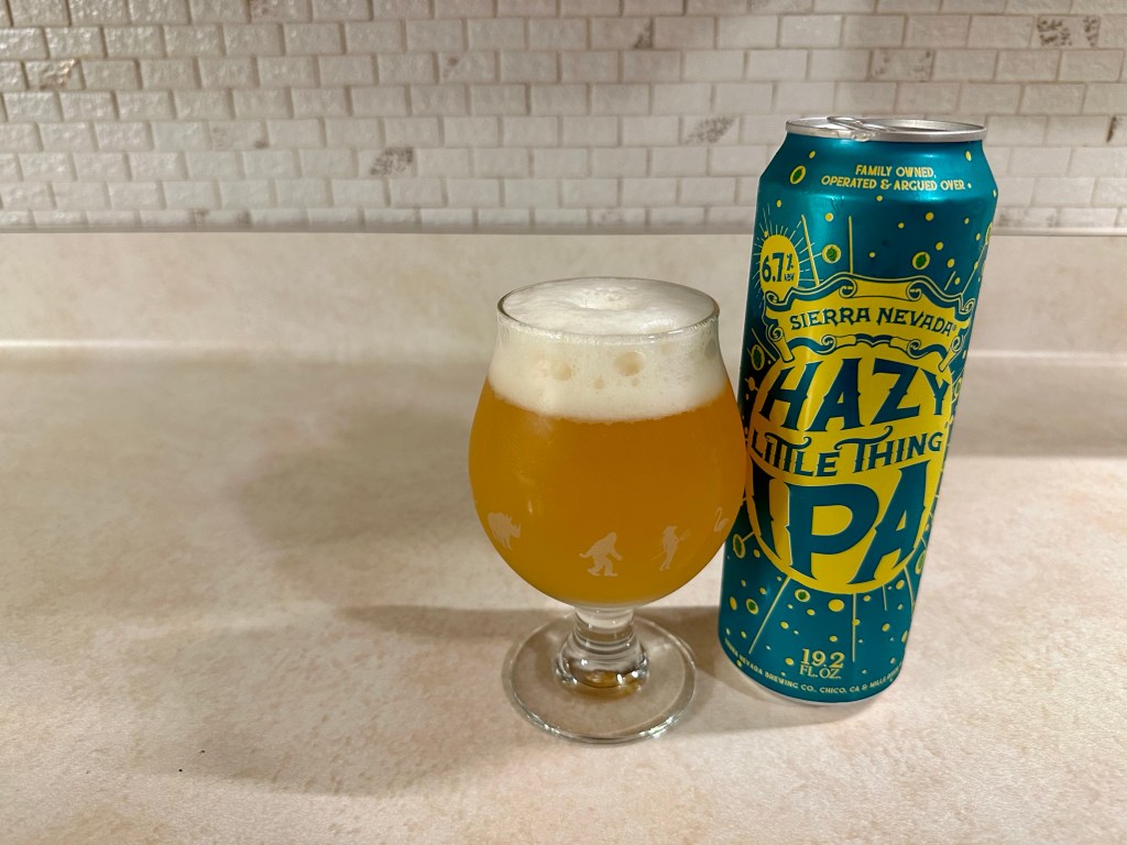 I’m having an easy to get, gas station beer I got locally on today’s Brew Review, Hazy Little Thing IPA from Sierra Nevada. This 6.7% IPA is aggressively dry-hopped with Citra, El Dorado, Magnum, Mosaic, Simcoe hops and less filtered.