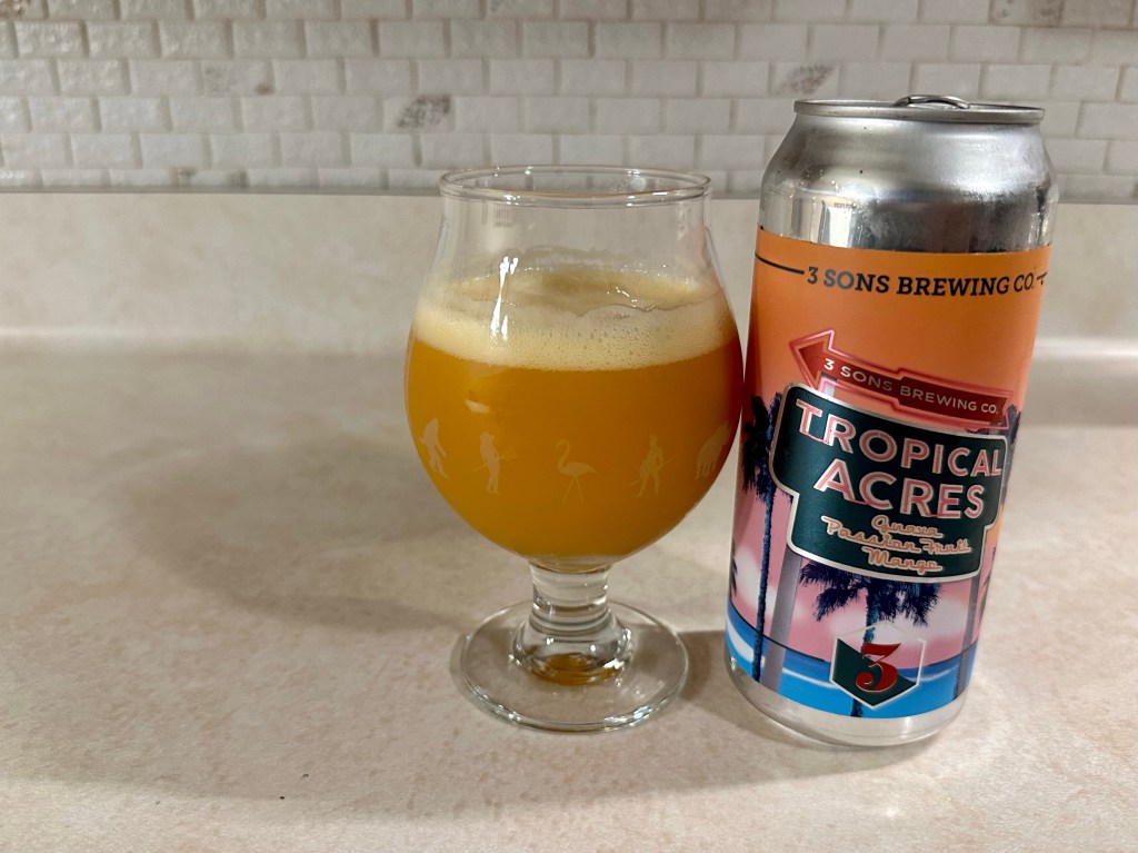 I’m having the Guava Passion Fruit Mango version of 3 Sons Brewing Co. in Dania Beach, Florida’s Tropical Acres on today’s Brew Review. This 6% sour ale was brewed with guava, passion fruit, and mango.