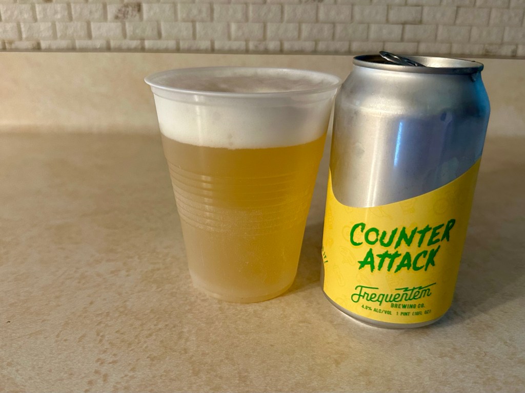 I’m having a new beer from Frequentem Brewing in Rochester for tonight’s Brew Review, Counter Attack. This light 4% lager was brewed with Siracusa lemon and lime.