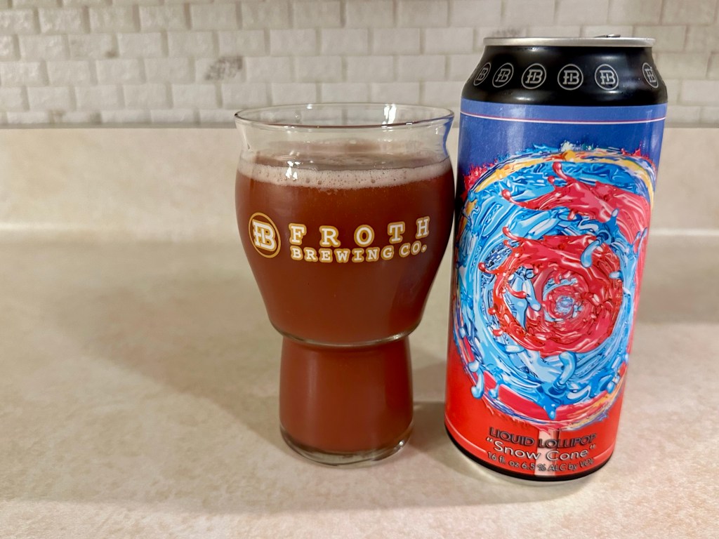 It’s been a minute since I’ve reviewed anything from Froth, and on today’s Brew Review, I’m having the Snow Cone version of their Liquid Lollipop. This 6.5% sour ale with cherry, orange, lemon, and blue raspberry replicates the summer favorite.