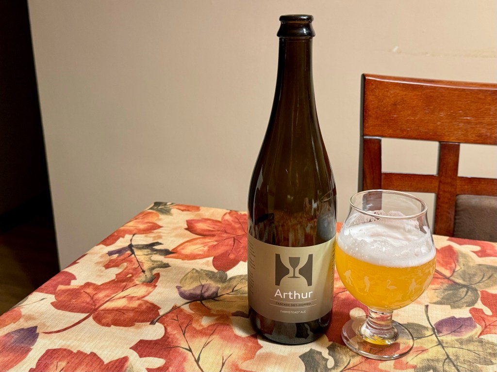 On tonight’s Brew Review, I’m trying the extremely sought after Hill Farmstead in Vermont with their Arthur. This 6% Cascade dry-hopped farmstead ale was brewed with pale malt, American and European hops, ale yeast and their well water and was bottle conditioned since October 26th, 2022.