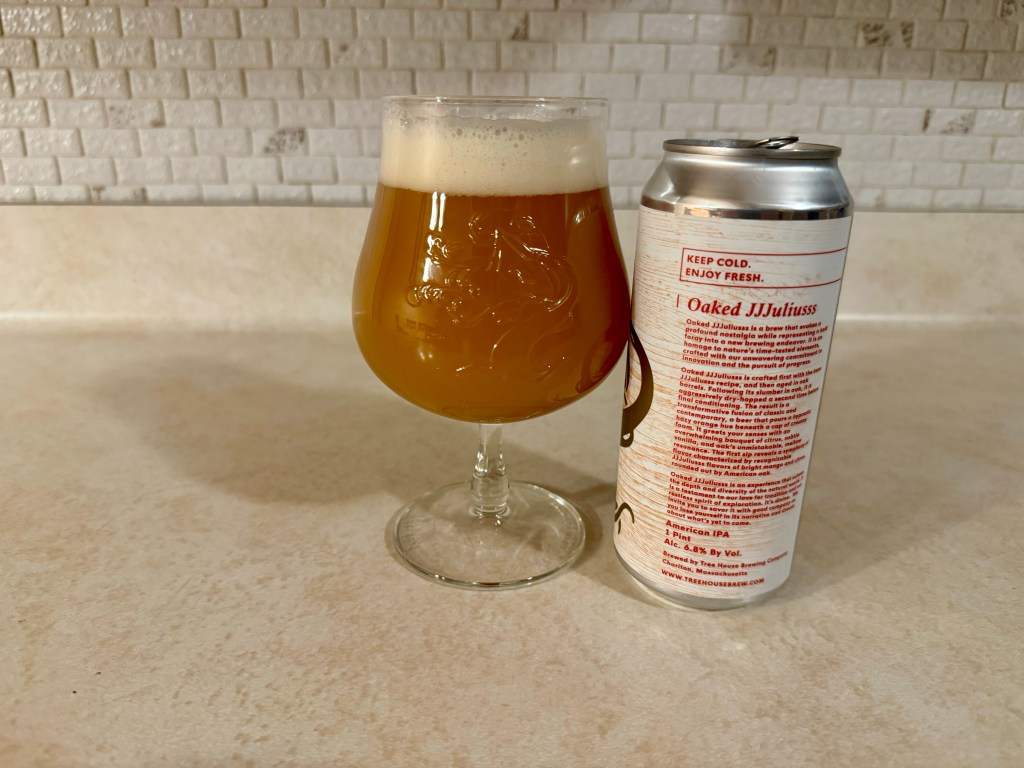I was really interested to try Oaked JJJuliusss from Tree House on today’s Brew Review, a 6.8% American IPA. They tried a new method of brewing on this one, taking the base JJJuliusss recipe, aging it in oak barrels and then aggressively dry-hopping it a second time before final conditioning.