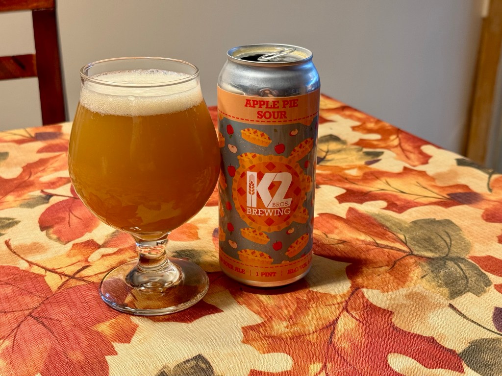 I’m having a fall-themed sour from K2 Brothers Brewing in Rochester, NY on today’s Brew Review, their Apple Pie Sour. This 6.5% kettle sour was brewed with honeycrisp apple juice, apple purée, cinnamon sticks, vanilla bean, and Chinook hops.