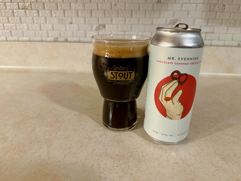 On tonight’s Brew Review, I’m trying out an interesting flavored stout from Reverie Brewing Company, their Mr. Svenning Chocolate Salted Pretzel Stout, a 6.7% stout brewed with cocoa and salt.