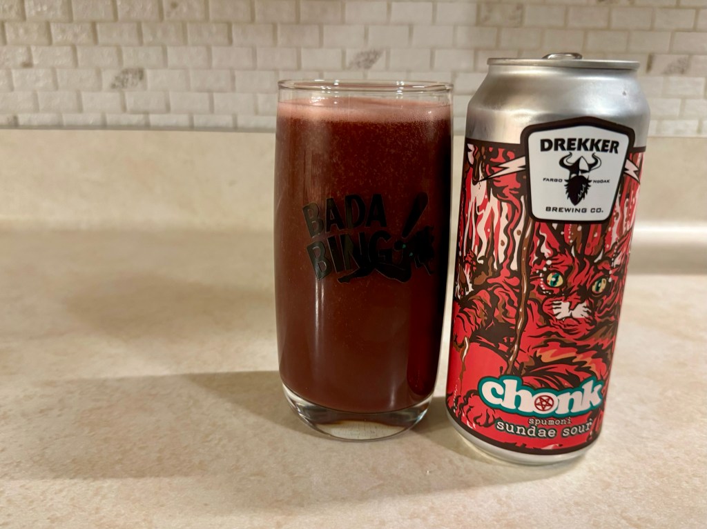 I’m trying out the Spumoni version of Drekker Brewing’s Chonk series of sundae sours on today’s Brew Review. This 6.1% fruited sour is brewed with cherry, chocolate ice cream, pistachios, and lactose, with Magnum and Hallertau Blanc hops.