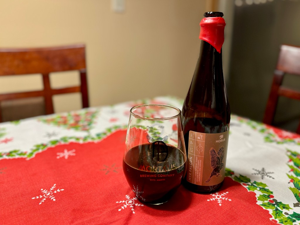 Teaming up again with Horus Aged Ales, Mortalis brewed up a barrel aged version of Nyx Falcon, which I’m having on today’s Brew Review. This 13% imperial stout was aged 15 months in Peerless Bourbon barrels, then conditioned on Emperors coconut, toasted coconut, house toasted hazelnuts, and hazelnut coffee.