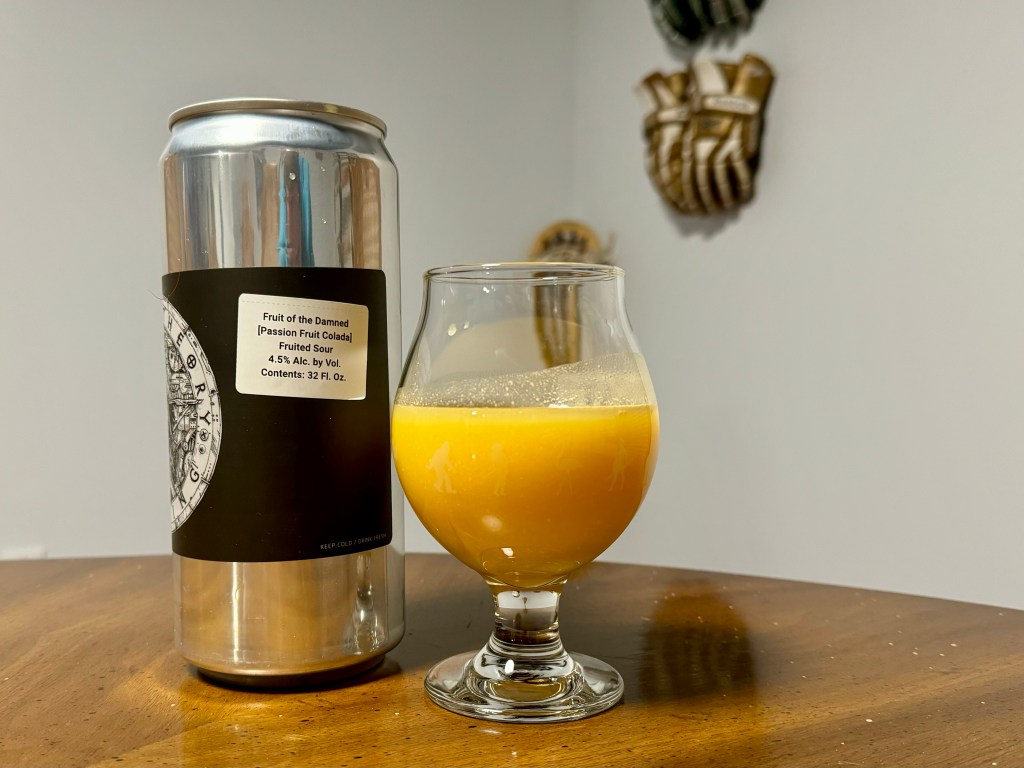 The sours from Adroit Theory I think are the best beers in the world, bar none. On today’s Brew Review, I’m having Fruit of the Damned. This 4.5% heavily fruited sour combined passion fruit and pina colada flavors.