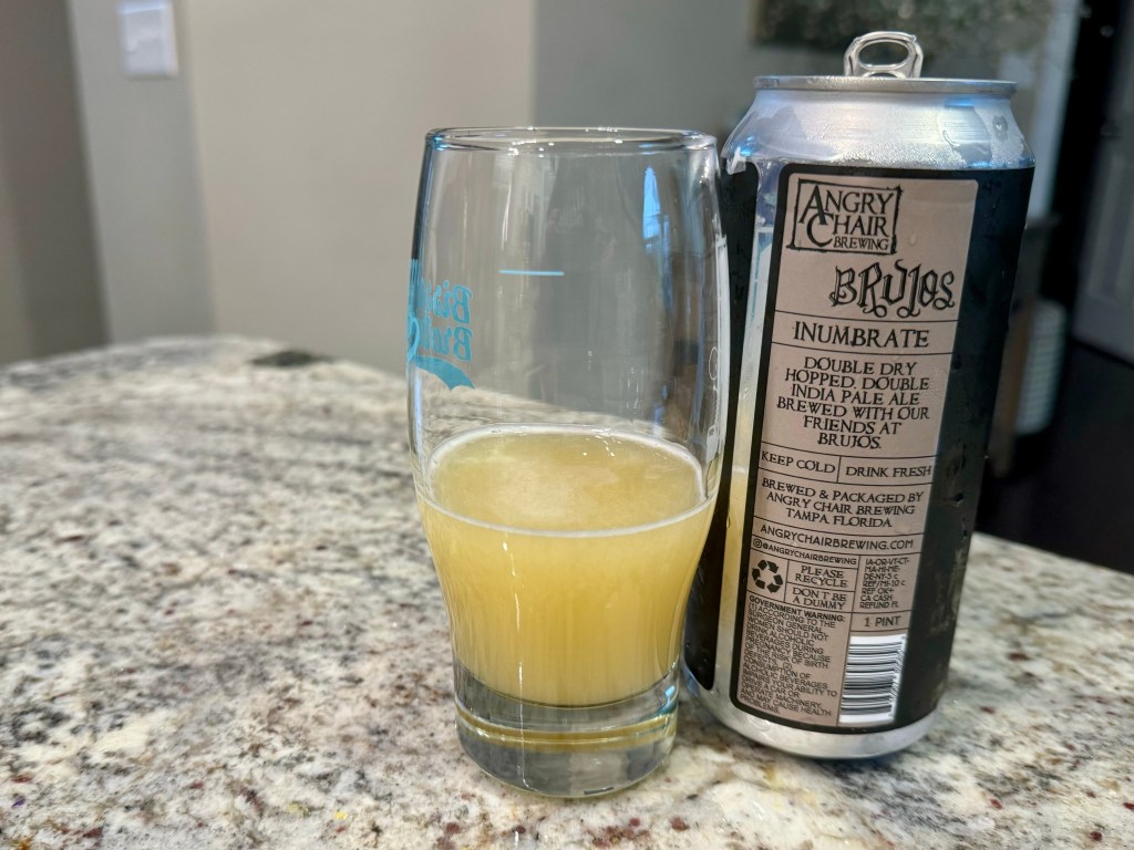 I normally go with their stouts, but on today’s Brew Review I’m having an IPA from Angry Chair. They collaborated with Brujos Brewing for Inumbrate, an 8.5% double dry hopped double IPA brewed with Wai-iti, Riwaka, and Citra hops.