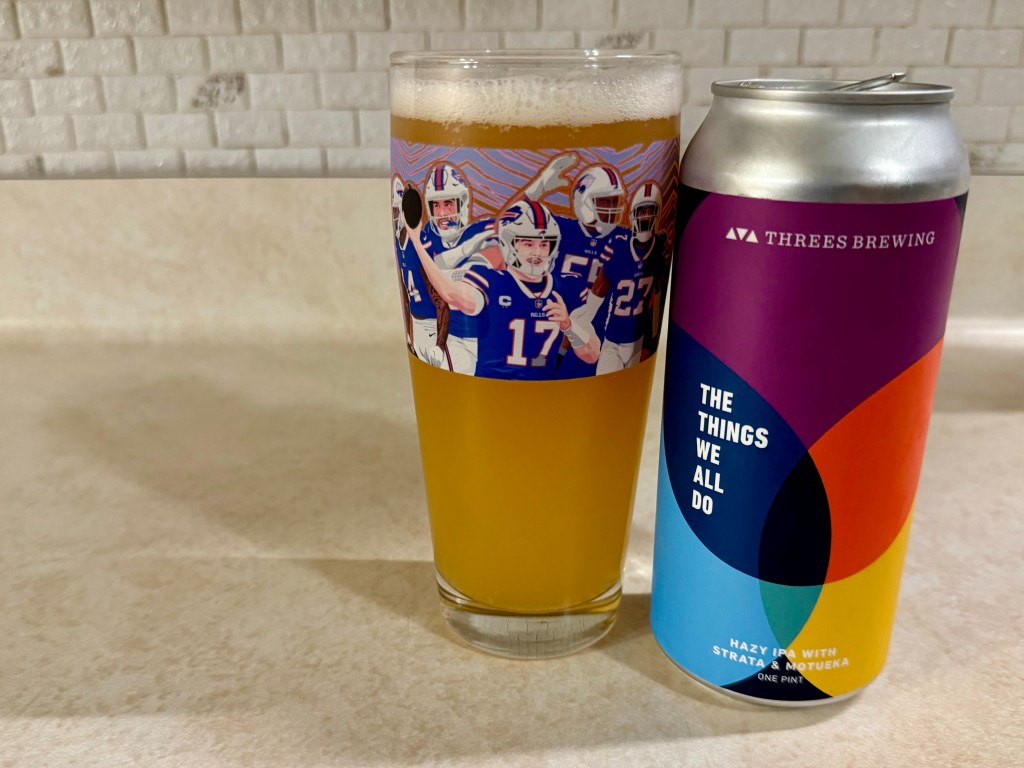 On tonight’s Brew Review I’m trying out The Things We All Do from Threes Brewing in Massachusetts. This 6.8% hazy IPA was brewed with Straka and Motueka hops for a fruit forward flavor.