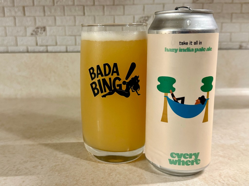 On today’s Brew Review, I’m trying another IPA from everywhere beer, take it all in. This one’s more my style, a 7% hazy brewed with oats and premium pilsner malt, and hopped with Citra, Motueka, Motueka Cryo, and Nelson.