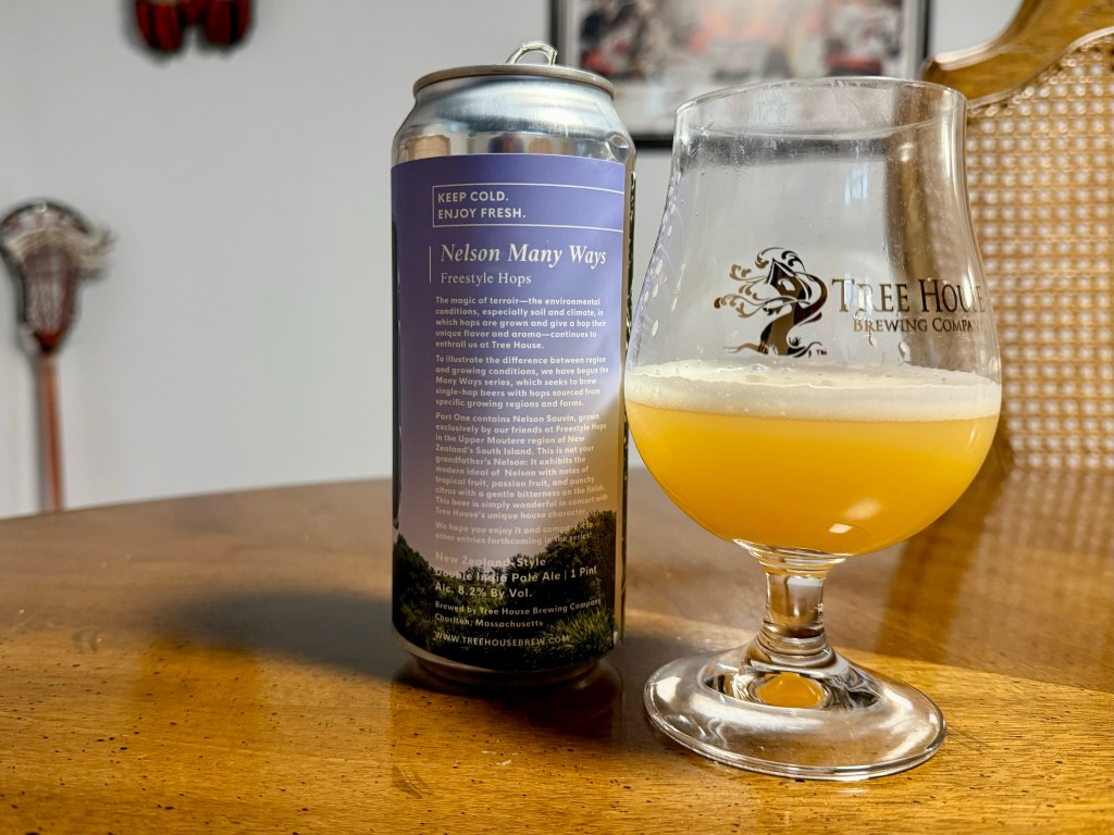 I’m continuing the Nelson Many Ways series from Tree House with the Freestyle Hops version on today’s Brew Review, containing Nelson Sauvin hops solely from Freestyle Hops in this 8.2% New Zealand-style double IPA.