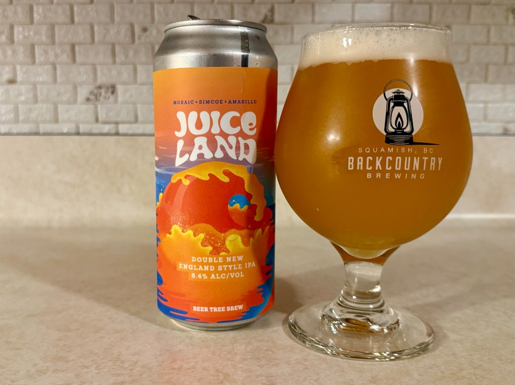 On tonight’s Brew Review, I’m having Juice Land from Beer Tree Brew. This 8.4% double New England IPA was brewed with Mosaic, Simcoe, and Amarillo hops.