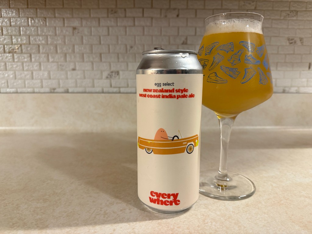 I’m having egg select from everywhere beer in Cali on today’s Brew Review. This New Zealand IPA was brewed with pilsner malt and hopped with Krush (HBC 586), Nelson, and Egger’s Special Riwaka.