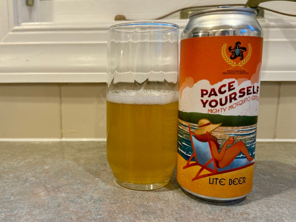 My cousin ran a race; the Mighty Mosquito, and got rewarded at the end with a special edition of Peacemaker Brewing Company’s Pace Yourself, a 4.6% lite beer brewed just for it and gave me a can for tonight’s Brew Review.
