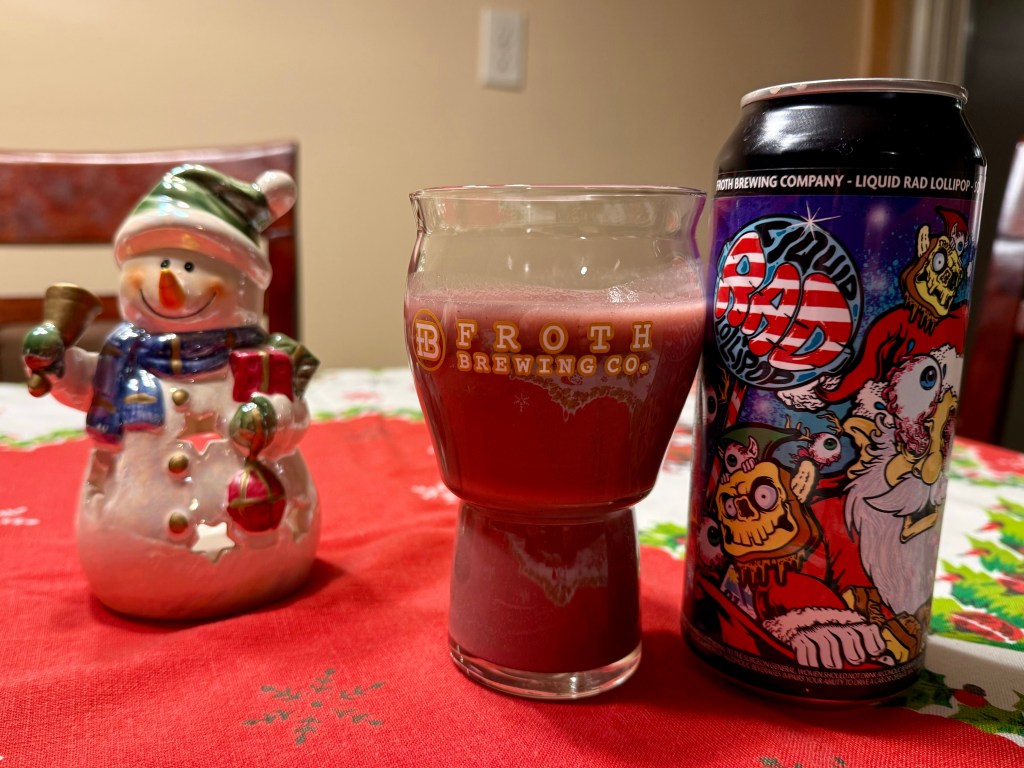 Merry Christmas! For today’s Brew Review, I’m going with the theme of the holiday with Santa’s Sandwich from Froth. The first of this year’s variants of my favorite 6.5% sour ale from them is flavored on blueberry, banana, marshmallow, and of course, peanut butter.
