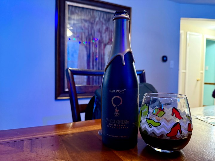 This year for their Death Star series with J. Wakefield, Equilibrium did a Grand Royale version of Barrel Aged The Campfire Strikes Back. This heavy 17% imperial stout on today’s Brew Review, extended the barrel time in a singular Willett barrel to 28 months and was brewed with wild Thai banana, Mostra Ghost Bear Coffee, Graham Cracker, Marshmallow, Honey, Cacao, and Madagascar Vanilla.