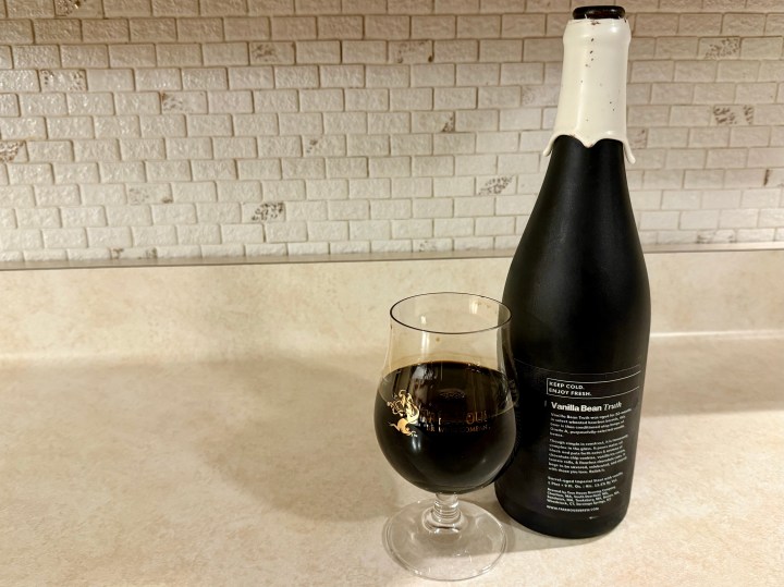 I’m having my second last Tree House Truth variant on today’s Brew Review, Vanilla Bean Truth. This 13.5% Imperial stout was aged 22 months in select wheated bourbon barrels and conditioned on heaps of Grade A vanilla beans.
