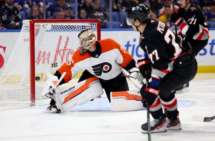 Alex Tuch, who’s bobblehead got handed out to everyone in attendance, opened the score, 4:33 into the game. He snuck behind the Flyers defense for a simple tip in from the crease setup in transition with Jason Zucker. The Sabres made it 2-0 with 6:11 to go in the first period, with Peyton Krebs getting a breakaway shorthanded, going forehand, backhand, and in the back of the net. The Flyers got on the board just over a minute later on that same power play, just over a minute later, on a rip from Matvai Michkov in the middle of the zone. Buffalo took the two goal lead back with 3:50 left in the first, with Jack Quinn cashing in on a beautiful move and pass for Ryan McLeod. Fun, fast paced first 20 minutes for this last game of the season.